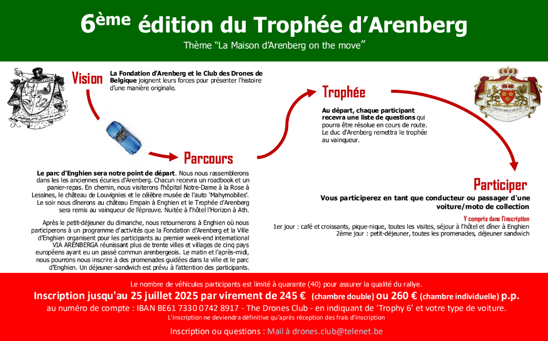 On Saturday 4 and Sunday 5 October 2025, we are organizing the 6th edition of our Arenberg Trophy. You’ll find all the details in the flyer below.