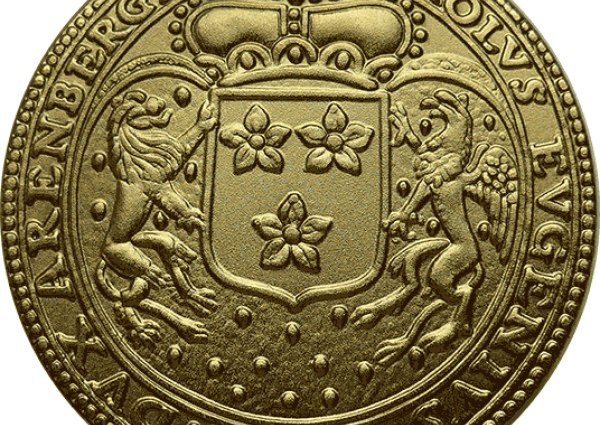 Reproductions in silver or gold of a florin (18.832 gr) dated 1676 showing the sovereign duke Charles-Eugène d’Arenberg (1674-1681).