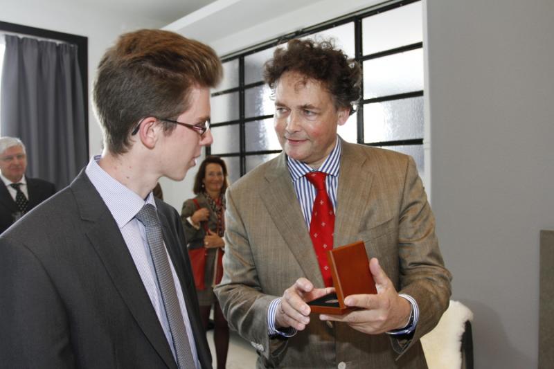 Photo: The laureate of the music academy of Enghien, Mr. Olivier Denis, receives the Arenberg medal for merit.